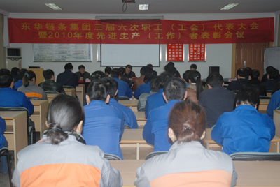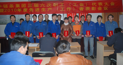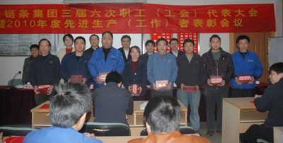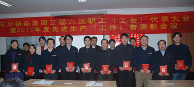 隨后,魯小林作了2010年工會(huì)工作總結(jié)報(bào)告和2011年工會(huì)工作思路的報(bào)告。并宣讀了關(guān)于表彰2010年度12位優(yōu)秀中層干部、19位崗位標(biāo)兵和215位先進(jìn)生產(chǎn)工作者的表彰文件。參會(huì)領(lǐng)導(dǎo)向被表彰的員工頒發(fā)了榮譽(yù)證書并合影留念。汽摩鏈?zhǔn)聵I(yè)部綜合處副處長馬曉光代表優(yōu)秀中層干部、傳動(dòng)鏈?zhǔn)聵I(yè)部零件車間沖制班長毛樹堂代表崗位標(biāo)兵在會(huì)上作了熱情洋溢的發(fā)言,一致表示將繼續(xù)發(fā)揮模范帶頭作用,發(fā)揮個(gè)人最大潛能,圓滿完成各項(xiàng)工作。