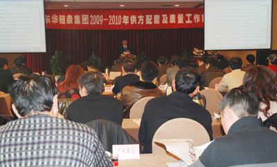 在談到2010年東華供應(yīng)鏈建設(shè)時,張總說,2010年,東華將通過 “質(zhì)量提升年”作為貫穿公司全年的中心工作,特別是要加強供應(yīng)鏈建設(shè),使供方提供的產(chǎn)品質(zhì)量、交貨期、價格、服務(wù)滿足東華市場競爭的需要,同時推進事業(yè)部機制的有效運行,強化企業(yè)基礎(chǔ)管理,增強企業(yè)活力,提高顧客滿意度,通過穩(wěn)健持續(xù)地發(fā)展,一步一個腳印,力爭在5-10年內(nèi)成為世界一流鏈傳動企業(yè),并和廣大供應(yīng)商進一步建立雙贏互利的合作伙伴關(guān)系。