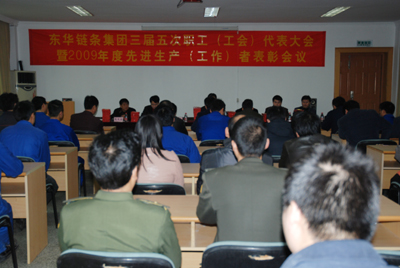 3月1日,東華集團(tuán)召開三屆五次職工(工會(huì))代表大會(huì)暨2009年度先進(jìn)生產(chǎn)(工作)者表彰會(huì)議??偨?jīng)理張世強(qiáng);副總經(jīng)理廖杭州、袁立華;財(cái)務(wù)總監(jiān)趙鵬飛;董事宣志榮;工會(huì)主席魯小林等高層、優(yōu)秀中層、崗位標(biāo)兵、先進(jìn)(生產(chǎn))工作者代表等80多人參加會(huì)議。
