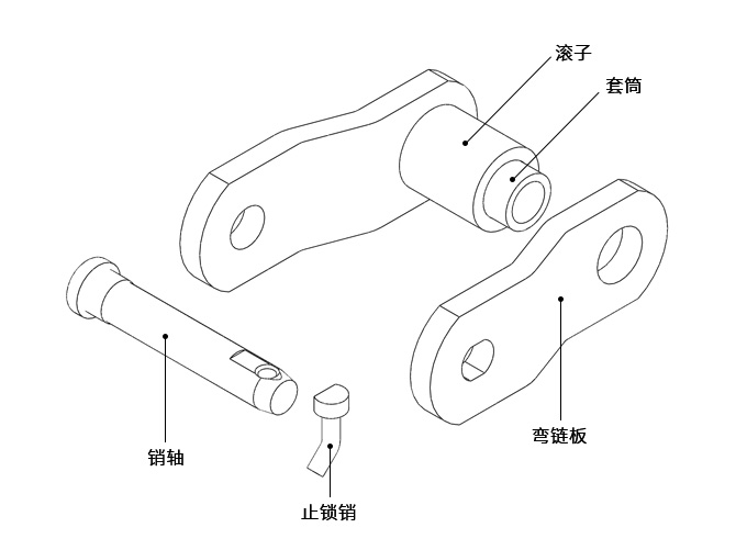 ● 彎板滾子鏈在結構上只有一種彎板鏈節,鏈板的折彎使鏈條能吸收較大的沖擊載荷;銷軸和套筒、鏈板間的間隙較大,在惡劣工況可以保持良好的靈活性。